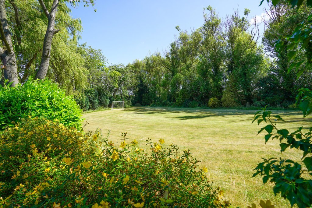 - Garden with lawn, patio, pergola, furniture, football nets, basketball hoop, swimming pool, hot tub and two saunas